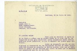 Santiago, Chile [a] Magda Arce, Casa Panamericana, Mills College, Oakland, California carta, 1944 julio 20, [manuscrito] Norberto Pinilla.
