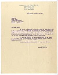 Papel con membrete de las "Escuelas de Temporada. Universidad de Chile".