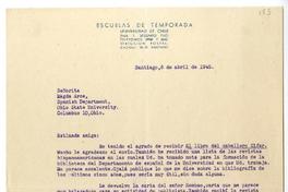 Santiago, Chile [a] Magda Arce, Spanish Department, Ohio State University, Ohio Carta, 1945 abril 06, [manuscrito] Norberto Pinilla.