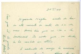 Santiago, Chile [a] Magda Arce Carta, 1944 febrero 24, [manuscrito] Norberto] Pinilla.