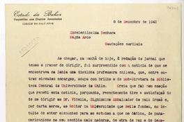 Salvador de Bahia, Brasil [a] Magda Arce Carta, 1942 diciembre 8, [manuscrito] Evaldo Simas Pereira.