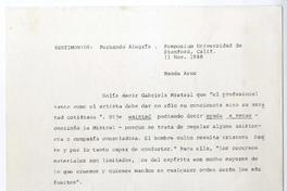 Homenaje a Fernando Alegria [manuscrito] / Magda Arce. 7 hojas ; 28 cm. .