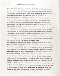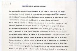 Cartas de Gabriela Mistral [manuscrito] / Eugenio Garcia Carrillo. 2 hojas ; 28 cm. .