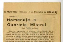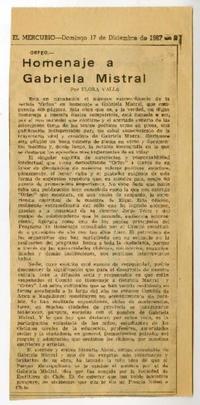 Homenaje a Gabriela Mistral [artículo] Flora Valls.