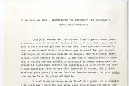 Almuerzo en "La Estancia" en Homenaje a Magda Arce Fernández [manuscrito]. 11 hojas ; 28 cm. .