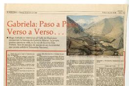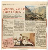 El Mercurio, Santiago, Chile, abril 7, 1991, páginas E 3 - E 4. Gabriela Mistral : Una lectura para mujeres / Jaime Quezada -- El Día, abril 6, 1991, página 23. Fue inaugurado programa de celebración 102 natalicio de nuestra Gabriela Mistral -- El Día, abril 6, 1991, páginas 5 - 6. Y Gabriela Mistral cumplió su sueño / Patricio Salinas y Mauricio Alegría -- El Mercurio, Santiago, Chile, junio 12, 1992, página 11, suplemento. Gabriela : Paso a Paso, Verso a Verso ... / Carmen Paz Rodríguez -- El Diario de Caracas, [Venezuela], mayo 16, 1983, página 19. Gabriela Mistral revela su multifacético legado -- La Segunda, Santiago, Chile, marzo 11, 1993, página 35. Cultura -- El Mercurio, Santiago, Chile, julio 6, 1993, página A6. La fascinación de Gabriela / E. P. B. -- El Mercurio, Santiago, Chile, mayo 2, 1993, página E 22. Gabriela Mistral, Un Símbolo de la Espiritualidad Chilena / Zdzislaw Jan Ryn -- El Día, mayo 2, 1993, página 5. Respuesta de la Fundación Premio Nobel Gabriela Mistral a Sra. Carmen Castillo -- abril 19, 1993. Fundación Gabriela Mistral tendrá sede en Vicuña -- El Mercurio, Santiago, Chile, noviembre 28, 1993, página E 9. El "amueblamiento" del alma / María de Los Angeles Covarrubias Claro -- El Mercurio, Santiago, Chile, noviembre 28, 1993, página12, suplemento. Ingeniero descubre faceta desconocida de Gabriela Mistral -- El Mercurio, Santiago, Chile, octubre 3, 1993, páginas E 10-11. El Afán de Cada Día / María de Los Angeles Covarrubias Claro -- El Día, abril 19, 1993, página 9. Califican de "inmoral e injusta" creación de otra Fundación Gabriela Mistral.