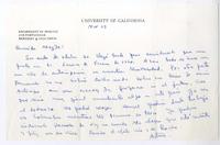 Sobre timbrado, con anotaciones holográficas a lápiz tinta y membrete de la "University of California".
