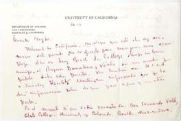 Sobre timbrado, con anotaciones holográficas a lápiz tinta y membrete de la "University of California".