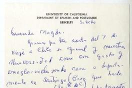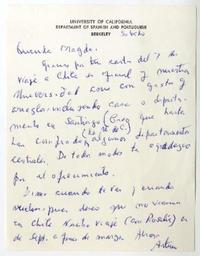 University of California, Department of Spanish and Portuguese, California [a] Magda Arce, University of California, Santa Barbara Carta, 1966 mayo 14, [manuscrito] Arturo Torres Rioseco.