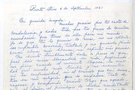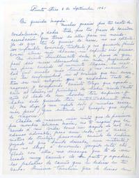 Puerto Rico [a] Magda Arce Carta, 1961 septiembre 06, [manuscrito] Margot Baños de Mañach.