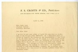 New York [a] Magda Arce, Stephens College, Columbia, Missouri Carta, 1944 abril 08, [manuscrito] / F. S. Crofts. 1 hoja ; 28 cm. .