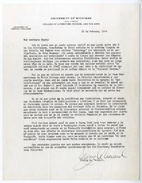 Ann Arbor, Michigan [a] Magda Arce carta, 1944 febrero 22, [manuscrito] Irving Albert Leonard.