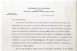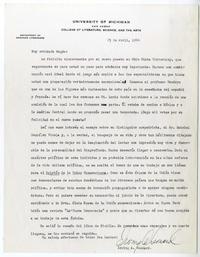 Ann Arbor, Michigan[a] Magda Arce Carta, 1944 abril 23, [manuscrito] / Irving Albert Leonard. 1 hoja ; 28 cm. .