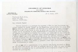 Ann Arbor, Michigan [a] Magda Arce, Mills College, Oakland, California Carta, 1944 junio 30, [manuscrito] / Irving Albert Leonard. 1 hoja ; 22 cm. .