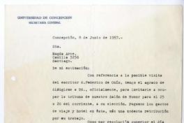 Invitación para ocupar la tribuna en el Salón de Honor en la Universidad de Concepción, con motivo de la posible visita del escritor Federico de Onís.