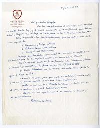 El remitente confirma su llegada a Santiago de Chile para el 20 de junio y anuncia que está dispuesto a dar tres conferencias, una de ellas, en la Universidad de Concepción.