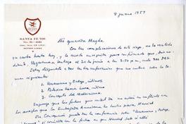 Hotel Crillón, Buenos Aires, Argentina [a] Magda Arce, Santiago, Chile Carta, 1957 junio 8, [manuscrito] / Federico de Onís. 1 hoja ; 28 cm. .