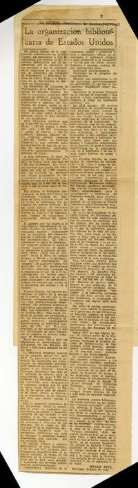 La organización bibliotecaria de Estados Unidos [artículo] / Magda Arce. La Nación (Diario : Santiago, Chile) -- marzo 9, 1943. 1 hoja ; 45 cm. .
