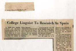 College Linguist To Research In Spain [artículo]. Sunday Tribune-Herald (Diario : EE.UU.) -- May 16, 1971, página 4 1 hoja : retrato ; 28 cm. .