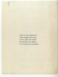 Report on the selection of latin american books done by Miss Magda Arce during the academic year 1944-45 at the Ohio State University [manuscrito] / Magda Arce. 6 hojas ; 28 cm. .