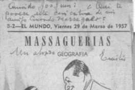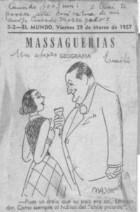 Fotografía de una caricatura de Emilio Edwards realizada por su amigo Conrado Walter Massaguer y publicada en el Diario "El Mundo" el 29 de marzo de 1957. Con una nota a su hermano Joaquín.