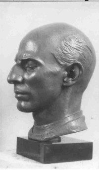 Fotografía de una escultura de cabeza en bronce de Jaime Eyzaguirre.