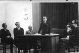 Conferencia [Fotografía]. [Santiago, Chile] ; [Producción no identificada], 1970. 1 fotografía : Monocromo blanco y negro ; 11,5 x 17,8 cm. .