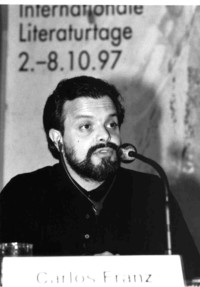 Carlos Franz [Fotografía] / Bernd Böhner. [Berlin, Alemania] ; [Photo Böhner], 1997. 1 fotografía : Monocromo blanco y negro ; 12,5 x 18 cm. .