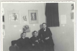 Grupo surrealista "Mandrágora", de izquierda a derecha : Jorge Cáceres, Braulio Arenas y Enrique Rosenblatt en la Casa Central de la Universidad de Chile.