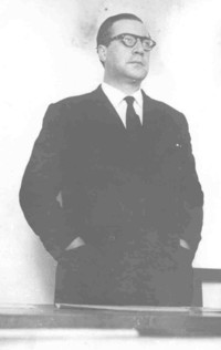 Eugenio González Rojas [Fotografía]. [Santiago, Chile] ; [Producción no identificada], Cerca de 1953. 1 fotografía : Monocromo blanco y negro, papel mate ; 12 x18 cm. .