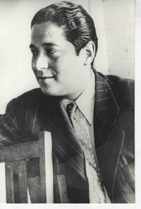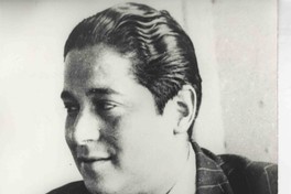 Nicomedes Guzmán [Fotografía]. [Santiago, Chile] ; [Producción no identificada], 1946. 1 fotografía : Monocromo blanco y negro, papel brillante ; 11,8 x 17,8 cm. .