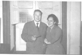 Nicomedes Guzmán e Isolda Pradel [Fotografía]. [Santiago, Chile] ; [Producción no identificada], Cerca de 1955. 1 fotografía : Monocromo blanco y negro, papel brillante ; 8,5 x 13,5 cm. .