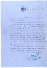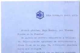 Isla Negra, Chile [a] Hugo Montes Carta, 1973 abril 24, [manuscrito] Pablo Neruda.