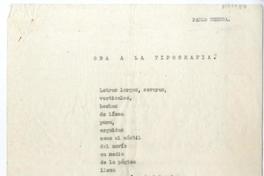Oda a la tipografía [manuscrito] Pablo Neruda.
