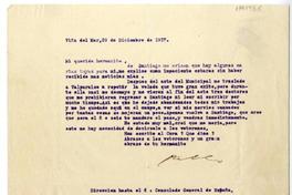 Viña del Mar, Chile [a] Laura Reyes, Temuco, Chile Carta, 1937 diciembre 29, [manuscrito] Pablo Neruda.