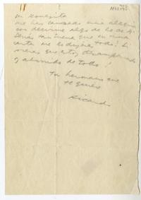 Santiago, Chile [a] Laura Reyes Carta, Cerca de 1933, [manuscrito] Pablo Neruda.