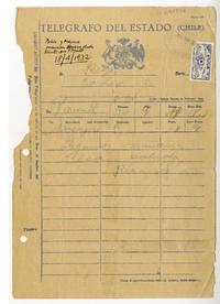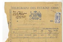 Puerto Montt, Chile [a] Laura Reyes, Temuco, Chile Telegrama, 1932 abril 18, [manuscrito] Pablo Neruda.