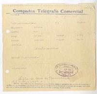 Santiago, Chile [a] Laura Reyes, Temuco, Chile Telegrama, 1927 junio 13, [manuscrito] Pablo Neruda.