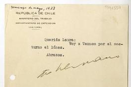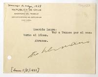Santiago, Chile [a] Laura Reyes, Temuco, Chile Tarjeta, 1933 mayo 5, [manuscrito] Pablo Neruda.
