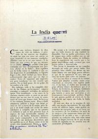 La India : Delhi [manuscrito] / Salvador Reyes. 3 hojas ; 25 x 18 cm. .