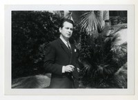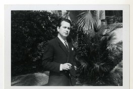 Enrique Lafourcade [fotografía]. [Santiago, Chile] ; [Productor no identificado], cerca de 1957. 1 fotografía : Monocromo blanco y negro, 9 x 12,8 cm. .
