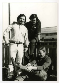 Durante la semana de poesía en Valdivia, de izquierda a derecha: Grinor Rojo, Omar Lara y Waldo Rojas, en el encuentro del Grupo Literario Trilce.