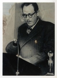 Mariano Latorre [fotografía]. Santiago, Chile ; [Producción no identificada], cerca de 1950. 1 fotografía : Monocromo blanco y negro, 9 x 13 cm. .