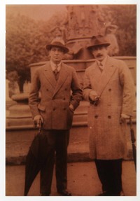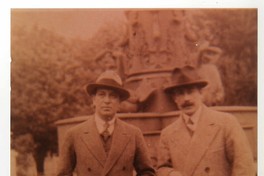 Mariano Latorre y Domingo Melfi [fotografía]. Concepción, Chile ; [Producción no identificada], 1930. 1 fotografía : color, 12,5 x 18,5 cm. .