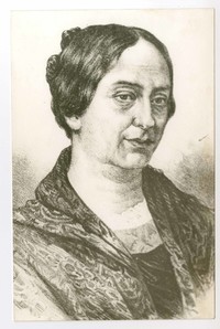Fotografía de un retrato póstumo a carbón de Mercedes Marín del Solar realizado por Luis Fernando Rojas, cerca de 1897.