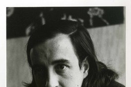 Gonzalo Millán [fotografía]. Jorge Aravena Llanca. Santiago, Chile ; [Jorge Aravena Llanca], cerca de 1971. 1 fotografía : Monocromo blanco y negro, 13,5 x 9,5 cm. .