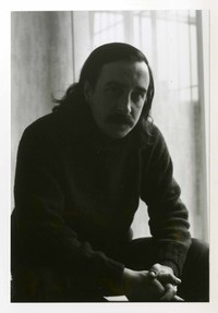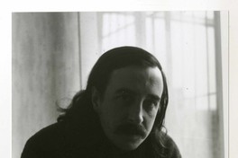 Gonzalo Millán [fotografía]. Jorge Aravena Llanca. Santiago, Chile ; [Jorge Aravena Llanca], cerca de 1971. 1 fotografía : Monocromo blanco y negro, 15 x 10 cm. .