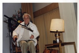 Nicanor Parra en la Sala América de la Biblioteca Nacional de Chile.
