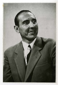 Oreste Plath [Fotografía]. [Santiago, Chile] ; [Producción no identificada], 1957. 1 fotografía : Monocromo blanco y negro, 11,5 x 17,5 cm. .