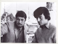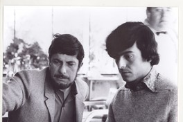 Antonio Cisneros y Poli Délano [Fotografía]. [Santiago, Chile] ; [producción no identificada], cerca de 1969. 1 fotografía : Monocromo en blanco y negro ; 17,5 x 23,5 cm. .